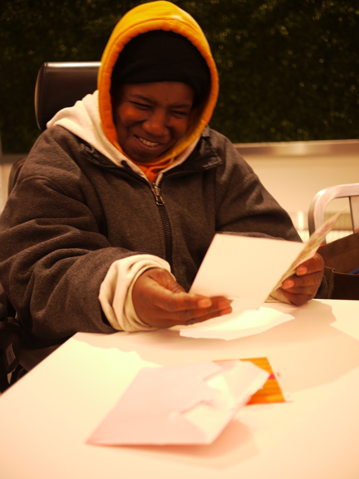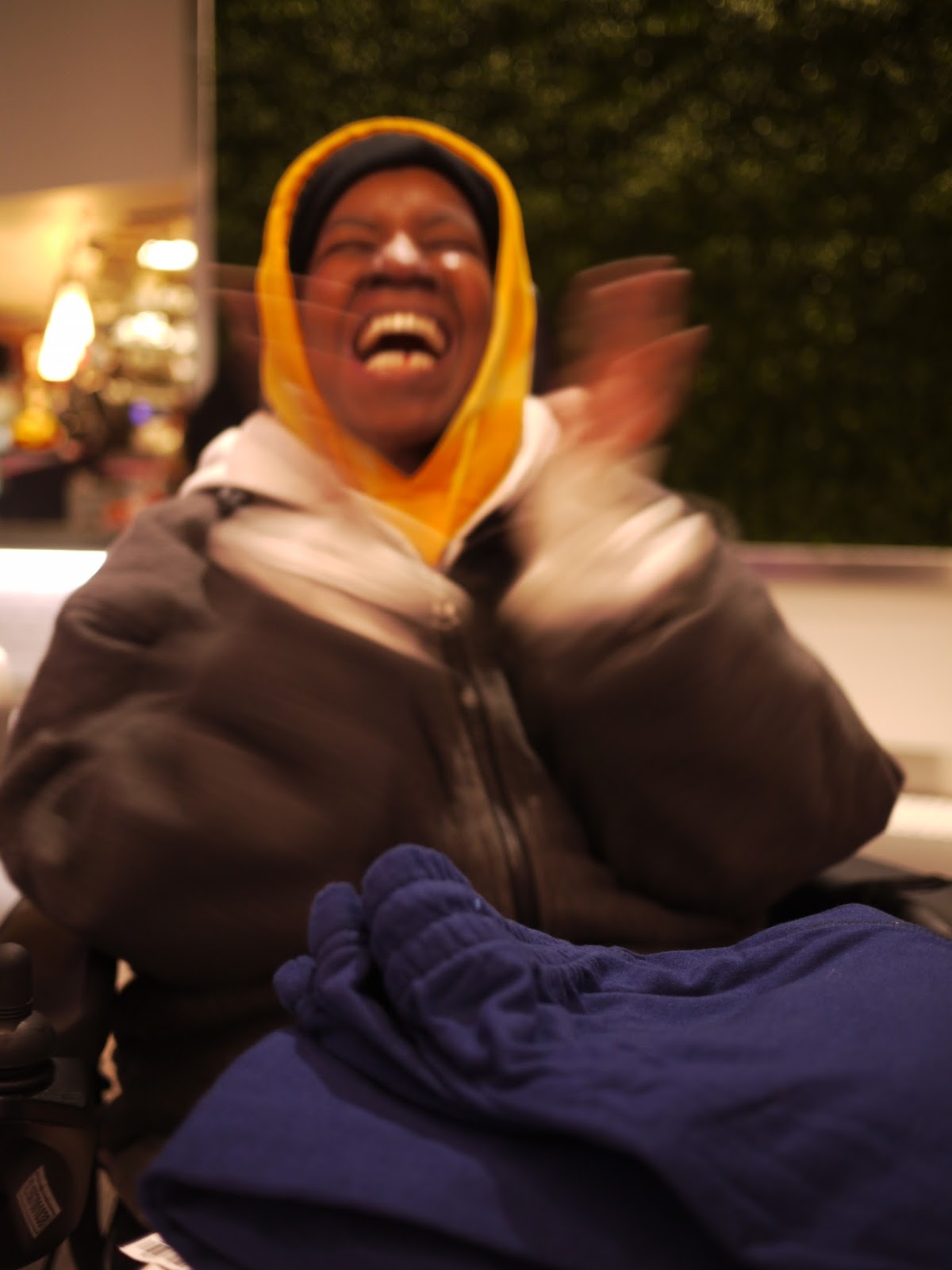 For once she was too excited to sit and chat, and zoomed out of the train station on her new electric wheelchair (yay!) so she could catch the first bus home. I got a voicemail later telling me she had arrived home and had gleefully arranged all of her new things.